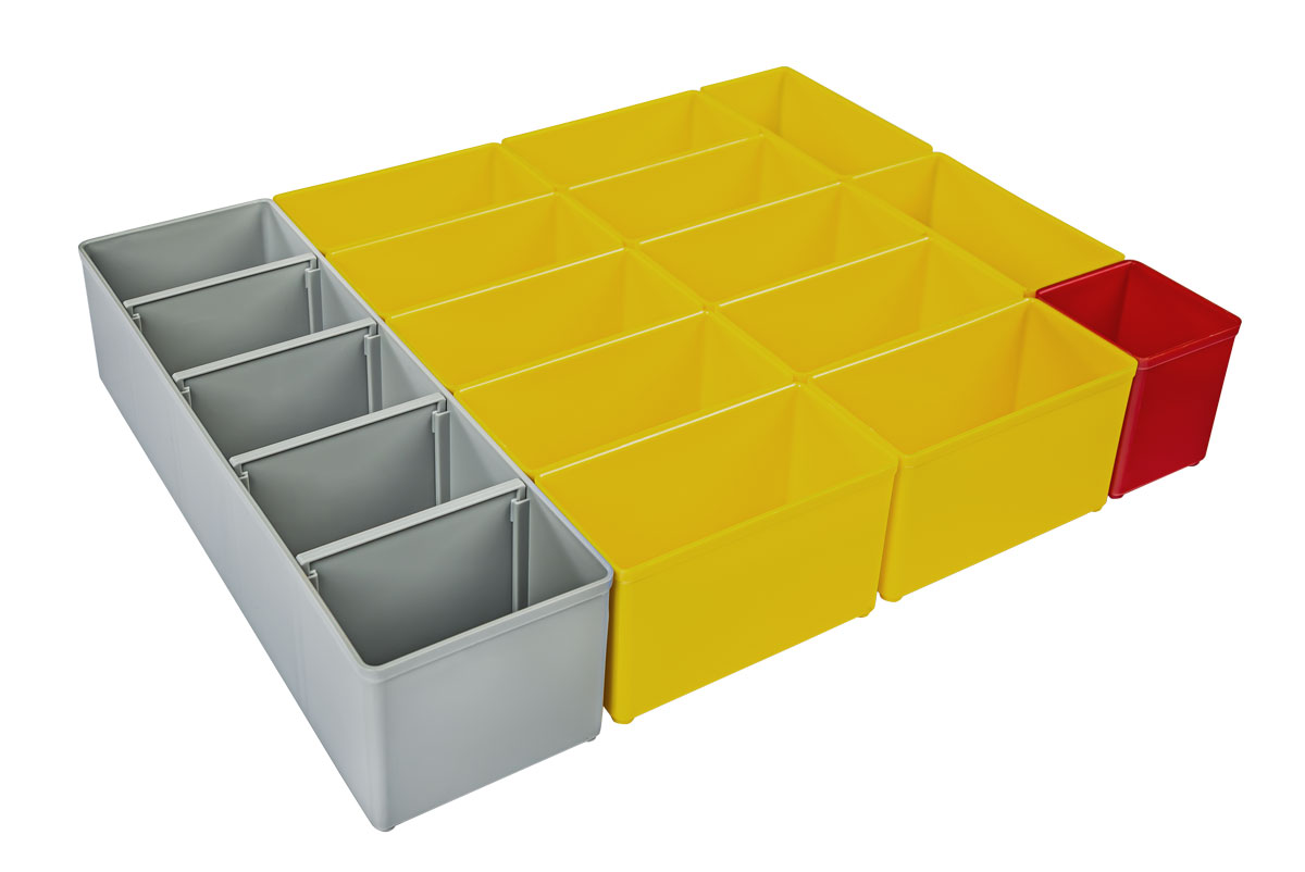 Beide lassen sich ideal mit einem Kleinteileeinsatz mit Mulden in verschiedenen Größen bestücken, die besonders kostenbewusst für Ordnung sorgen. Die farbigen Insetboxen bieten eine nochmals flexiblere und genauso formschlüssige Unterteilungsmöglichkeit für die i-BOXX, LS-Tray und sämtliche anderen BOXXen. In ihnen lassen sich ideal Schrauben und andere Kleinteile vermischungsfrei transportieren und sind dabei stets griffbereit. So wird i-BOXX, als auch LS-Tray zur mobilen Lager- und Aufbewahrungslösung mit Ordnungsgarantie.